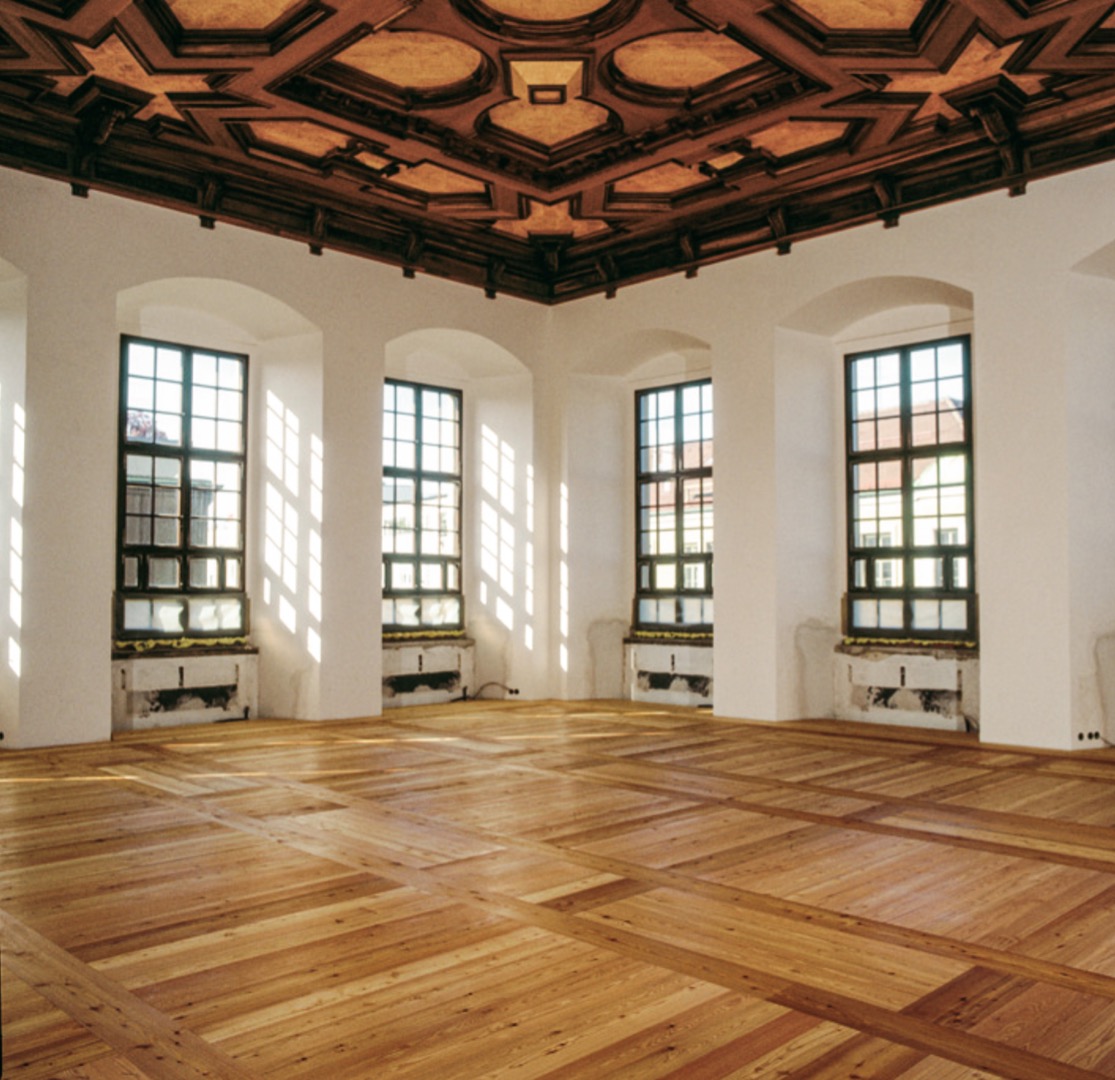 Neue Holzböden können je nach individuellen Wünschen versiegelt, also filmbildend geschützt, oder geölt werden, wenn Sie nicht werksseitig vom Hersteller vorbehandelt sind. Neuböden können natürlich auch nach alten Verlegemustern in Altbauten eingebracht werden, wie links zu sehen, im Rathaus Augsburg.